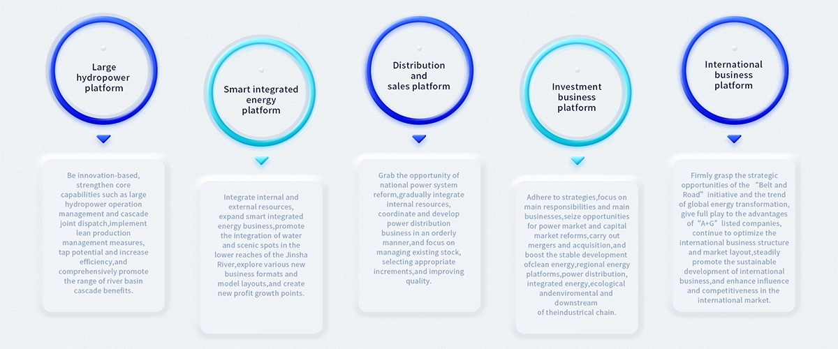 During the 14th Five-Year Plan period, CYPC will insist on upholding the new development philosophy, accelerating the establishment of a new development paradigm, and striving to promote high-quality development. In particular, it will actively contribute to the implementation of national strategies, including the Yangtze River Economic Belt, joint protection of the Yangtze River, carbon emission peaking, and carbon neutrality. Furthermore, it will focus more on its main businesses, legal compliance, technological innovation, internal reforms, as well as high-quality development. It will also make comprehensive efforts from multiple aspects such as the industrial chain, energy structure, business model, and development regions, thus further consolidating its leading position in the global hydropower industry, and endeavoring to become a world-class listed company engaged in clean energy with hydropower at its core.