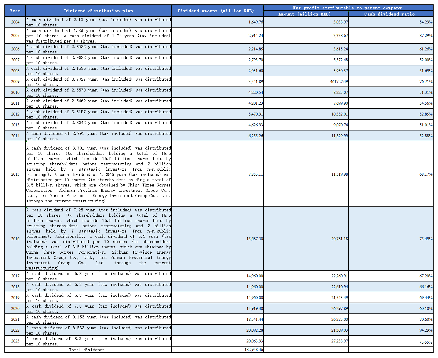 • Changes in Dividend Distribution Policy