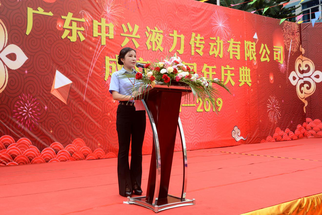 下午15:08時,主持人宣布慶典活動開始,奏唱國歌、鳴放禮炮,伴隨著熱烈的掌聲,總經理黃慶莉女士上臺致辭。她表示:中興公司從國有企業、中德合資到體制改革,砥礪前行六十年,現已成為國內最大的液力偶合器專業廠家,在國際上享有較好的知名度。2001年成功轉制為民營企業后,通過抓技改,大投入,大產出,公司生產經營獲得高速發展。